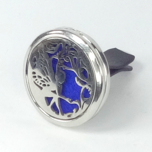 A couple companies offer thin, attractive, cylindrical shaped metal aromatherapy pendants that open to hold cotton or fabric wicks. The essential oils evaporate into the air out of small holes present in the pendant.