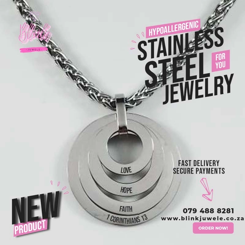 Wheat Chain Necklace & Pendant Combo’s | Available online at great prices on blinkjuwele.co.za, South Africa’s leading Stainless Steel Jewelry store online | Blink Juwele