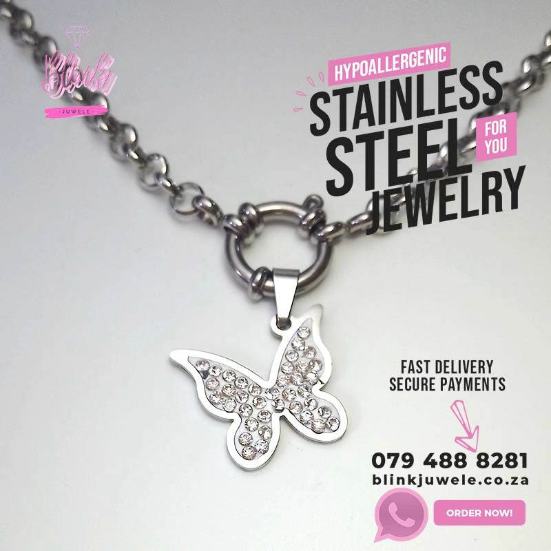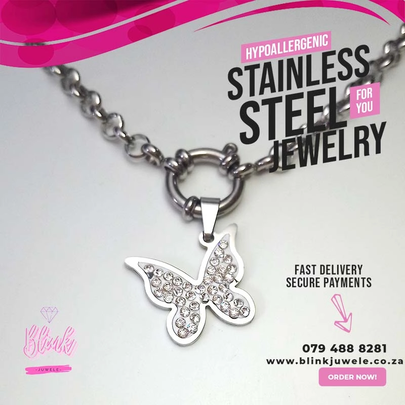 Introducing the Bold Elegant Crystal Butterfly Pendant – Stainless Steel Pendants with Presence