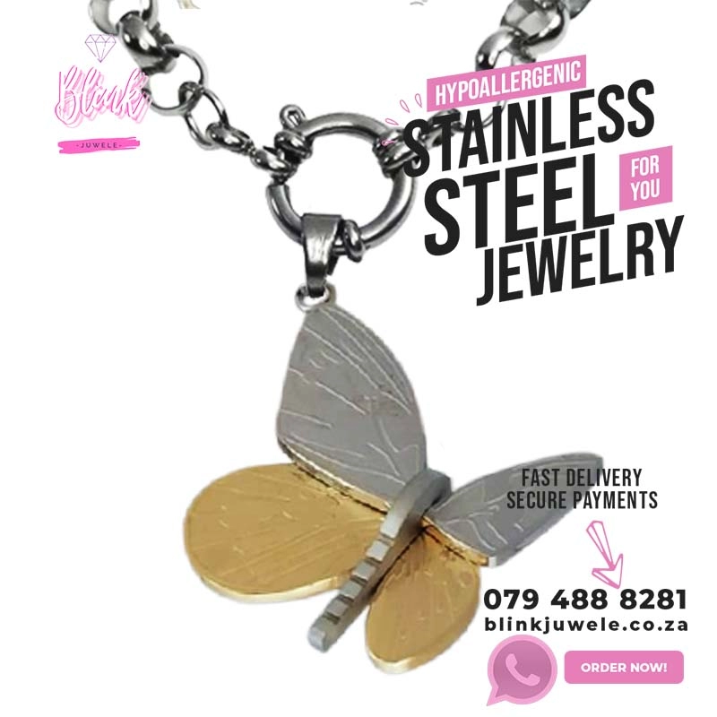 Stainless Steel Gold Butterfly Necklace