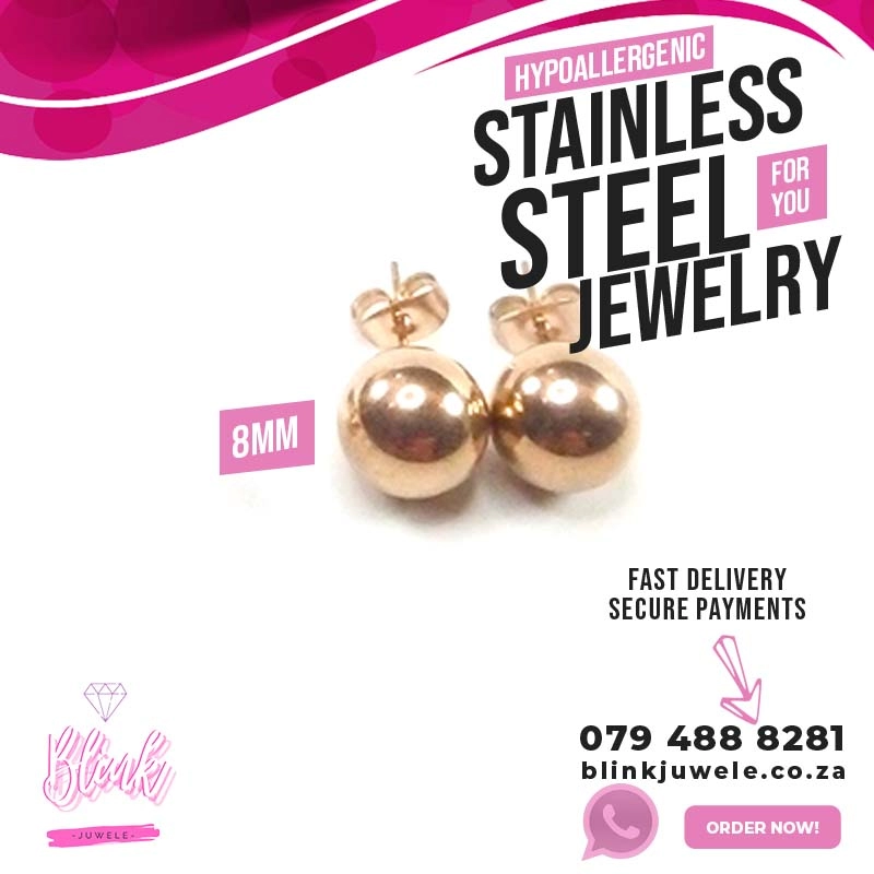 Stainless Steel Large Ball Stud Earrings (Rose Gold)
