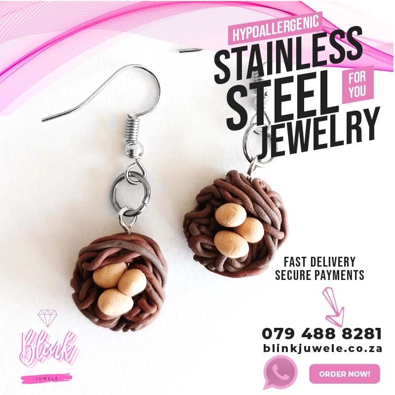 View our Collection of Stainless Steel Clay Earrings Jewelry Pretoria exclusively available from Blink Juwele