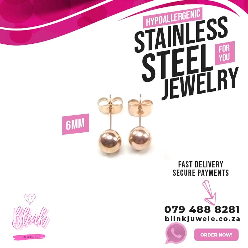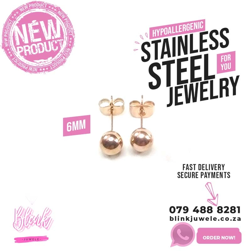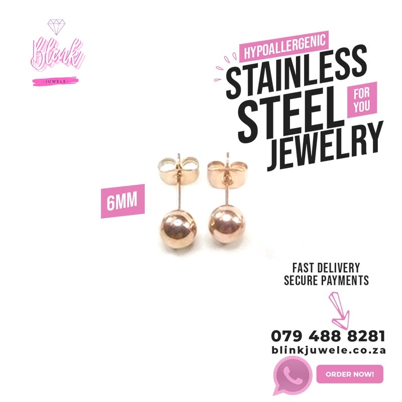 Stainless Steel Medium Ball Stud Earrings (Rose Gold)