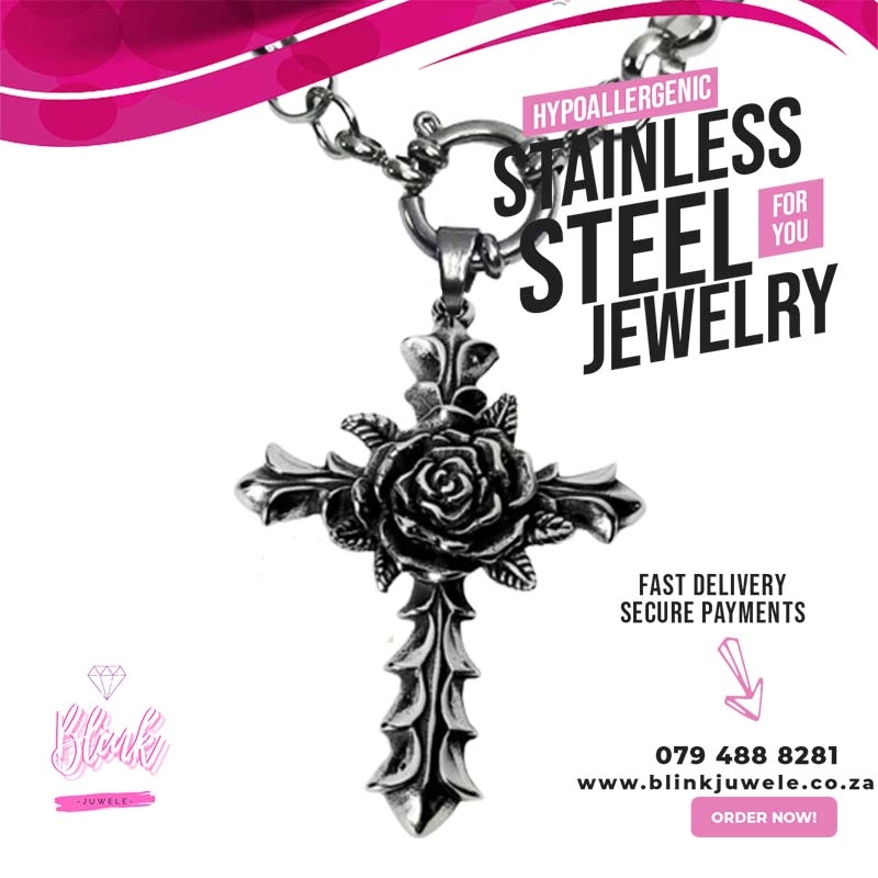 Introducing the Bold Elegant Rose Cross Pendant – Stainless Steel Pendants with Presence
