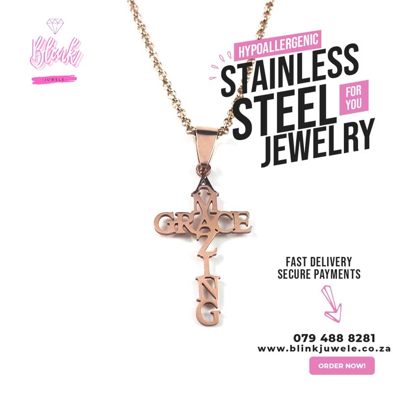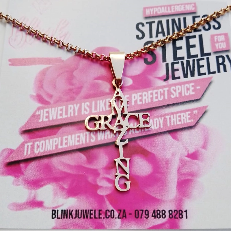 Stainless Steel Rose Gold Amazing Grace Necklace and Pendant Combo